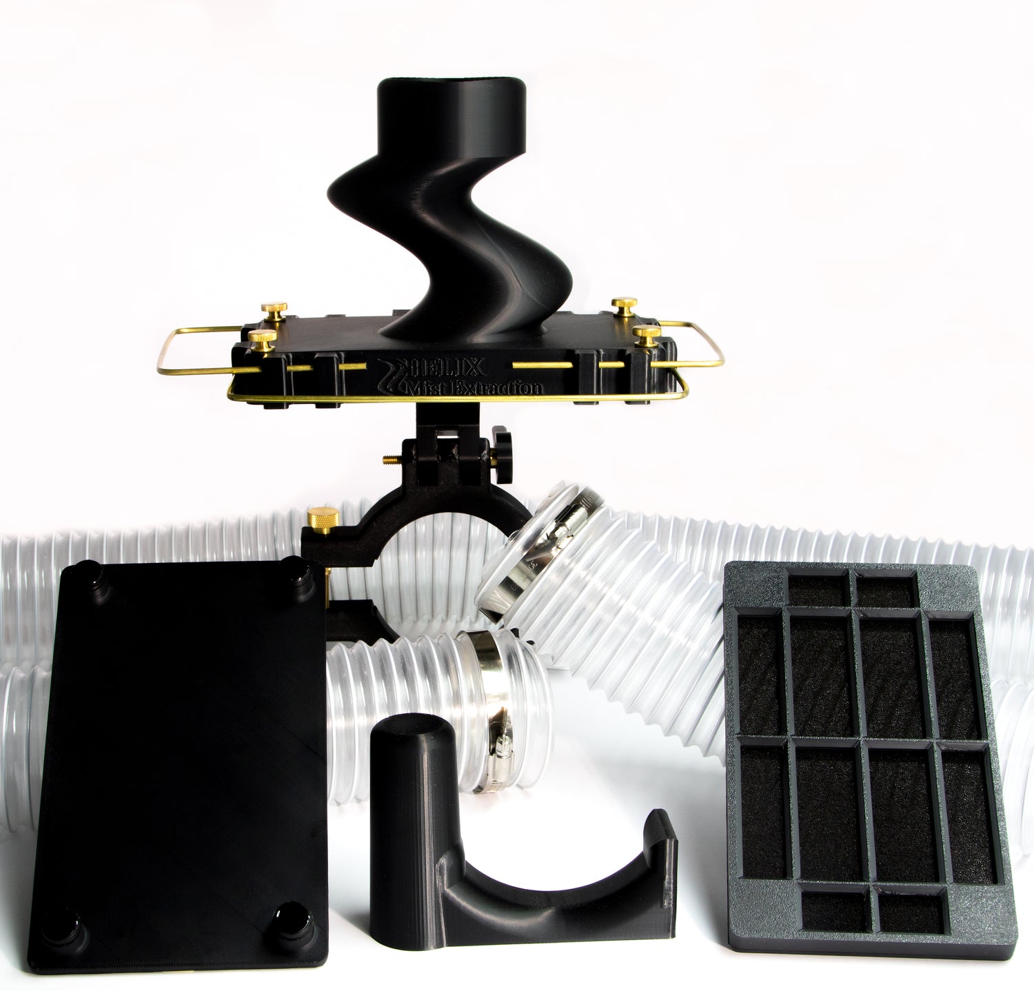 The Mist Extraction System features a durable design that enables you to place the ventilation directly at the point of grinding, effectively capturing mist and smoke before it can pollute your shop's air. Additionally, the Helix mast, exclusive to this system, concentrates mist back into liquid coolant for easy drainage into the catch pan. With the included accessory plates, there's no worry about direct spray or splashes reaching your ventilation system.